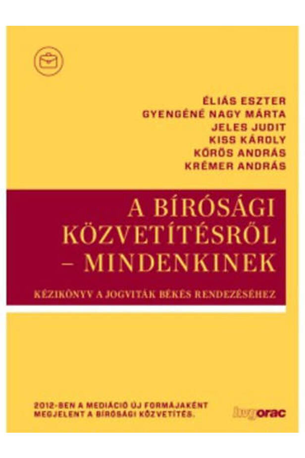 E könyv szerzői a munkacsoport tagjai közül kerülnek ki. A mű több éves tevékenységük és tapasztalataik összefoglalója, azok továbbgondolt változata, amellyel jól kezelhető kézikönyv formájában is segítséget szeretnének nyújtani a bírósági vezetőknek, közvetítőknek, bíráknak, ügyvédeknek és nem utolsó sorban maguknak a jogvitában álló feleknek a mediáció megismeréséhez, igénybe vételének lehetőségeihez, gyakorlati alkalmazásához. Ennek érdekében bemutatják a mediációt történetiségében és valamennyi perbeli szereplő oldaláról, részletesen elemzik a bíró, az ügyvéd, a koordinátor és a közvetítő tevékenységét, munkájuk szervezeti keretrendszerét, megismertetnek a bírósági közvetítés olyan speciális területeivel, mint a határon átnyúló családjogi ügyekben alkalmazható, valamint az új Polgári Törvénykönyv által meghonosított kötelező közvetítés. A könyv gyakorlati használhatóságát jelentősen emeli, hogy első segítséget nyújtó mellékleteket, iratmintákat is tartalmaz és függelékként közli az alkalmazandó legfontosabb jogszabályokat. Lapjait a szerzők nem tekintik lezártnak: azokat írhatják tovább, akik ezt a nehéz műfajt a gyakorlatban művelik, illetve akiket a bennük foglaltak gondolkodásra serkentenek.